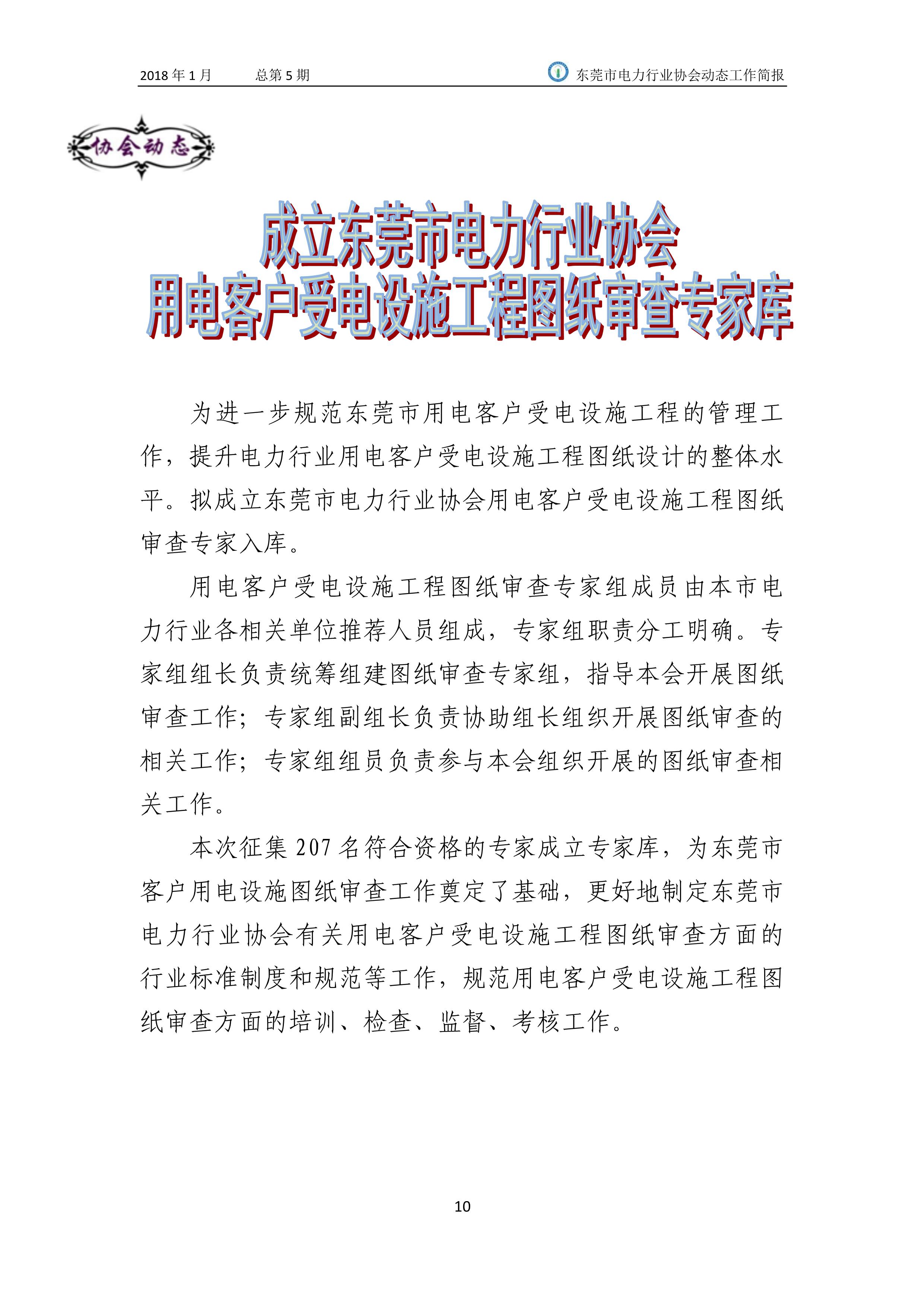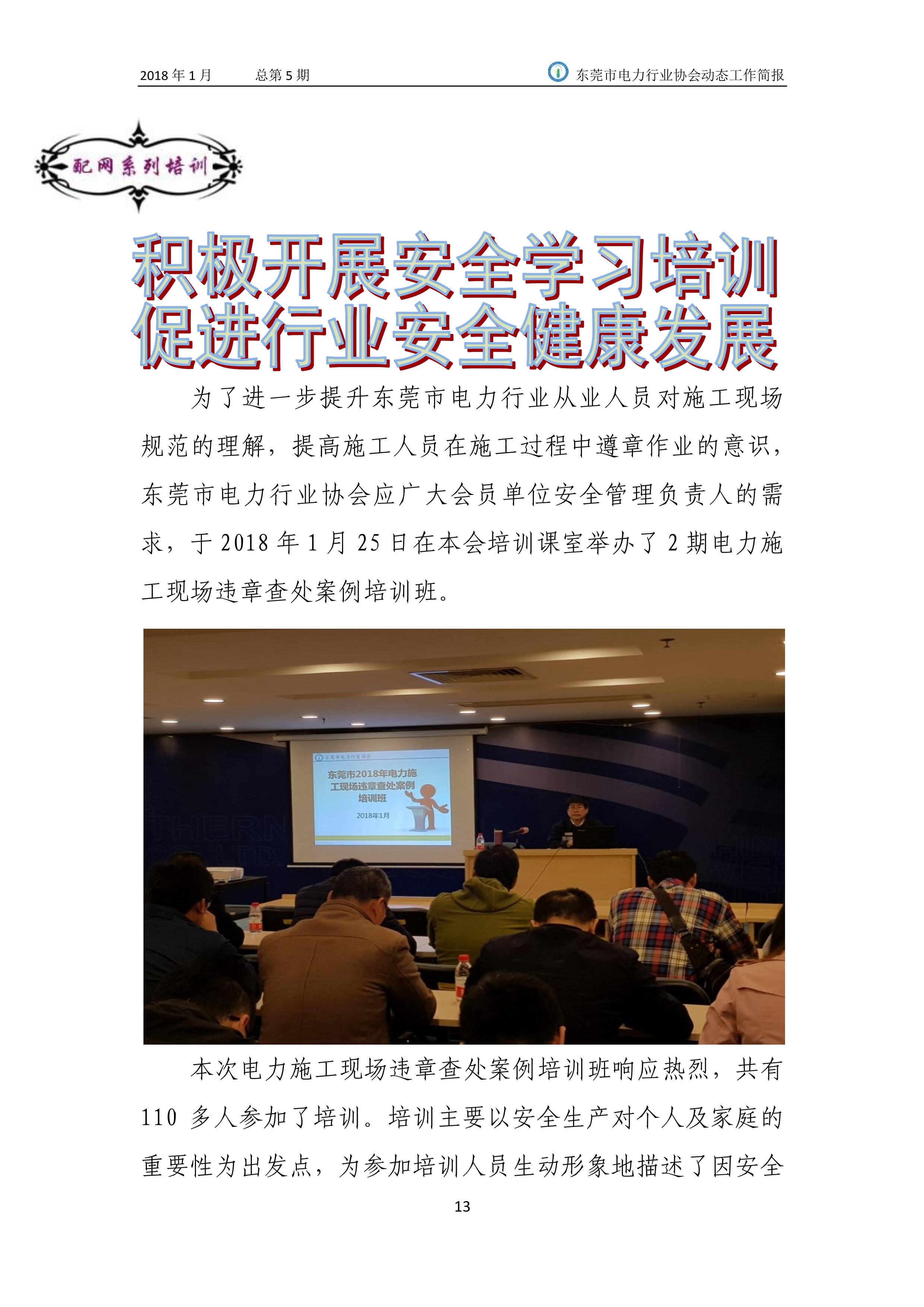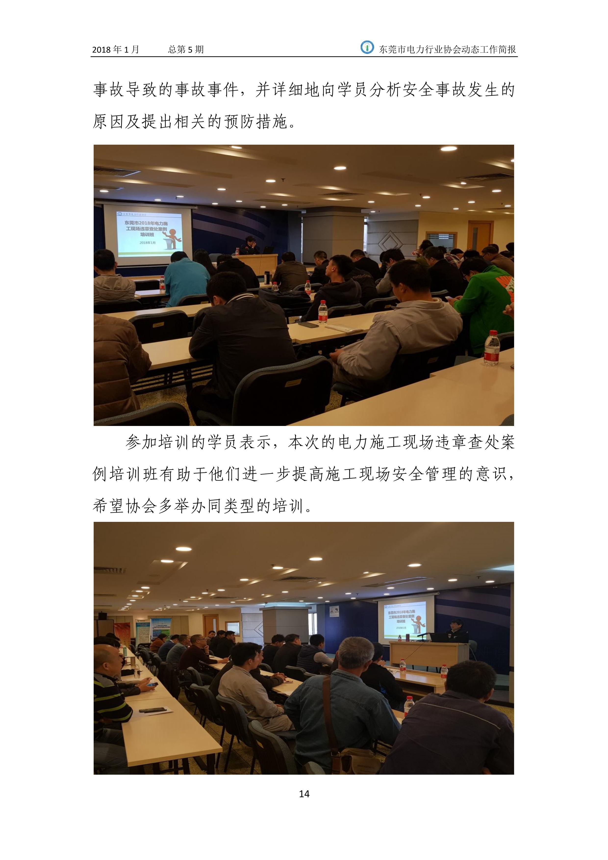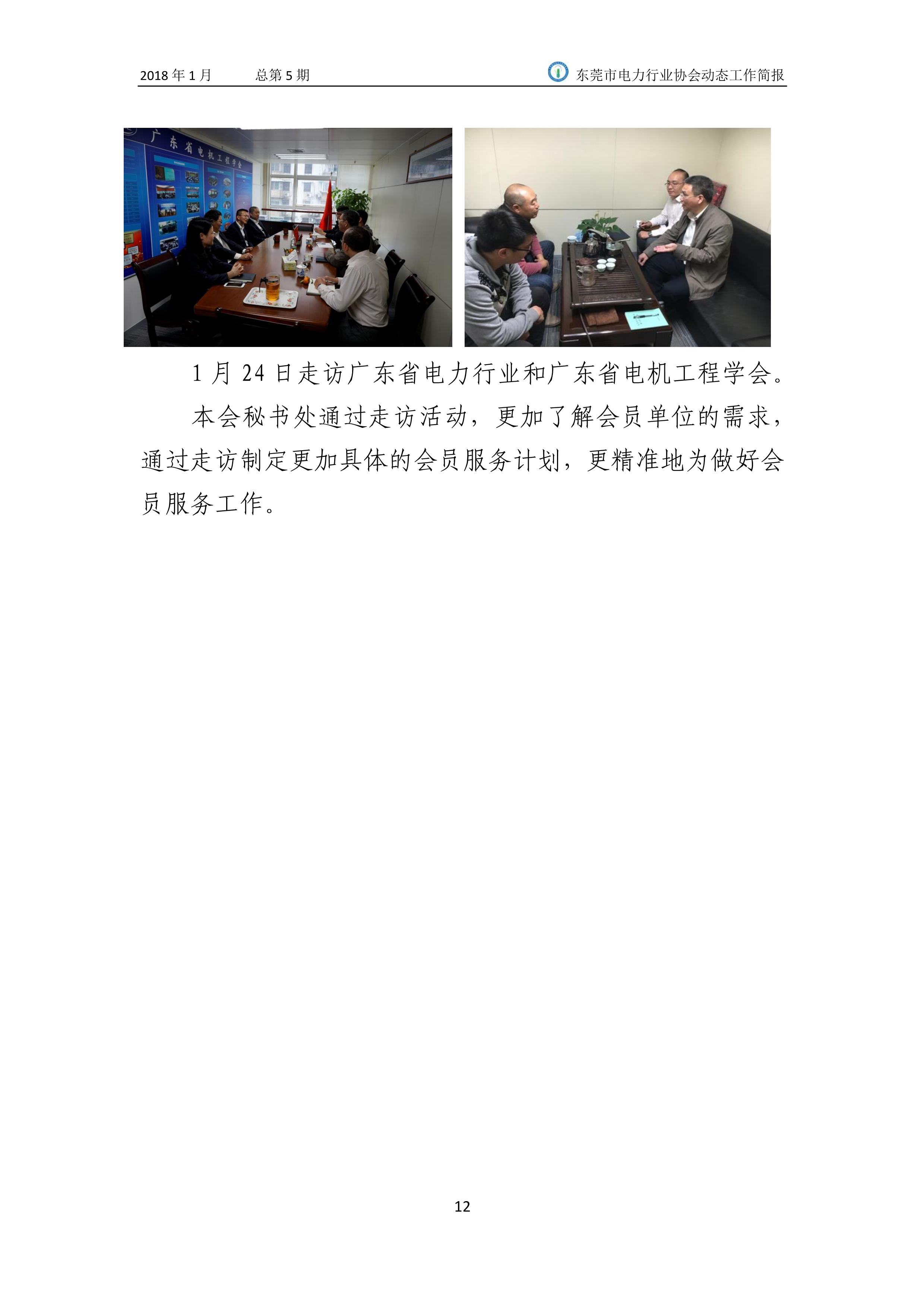 東莞市電力行業協會2018年(1月)動態工作簡報
