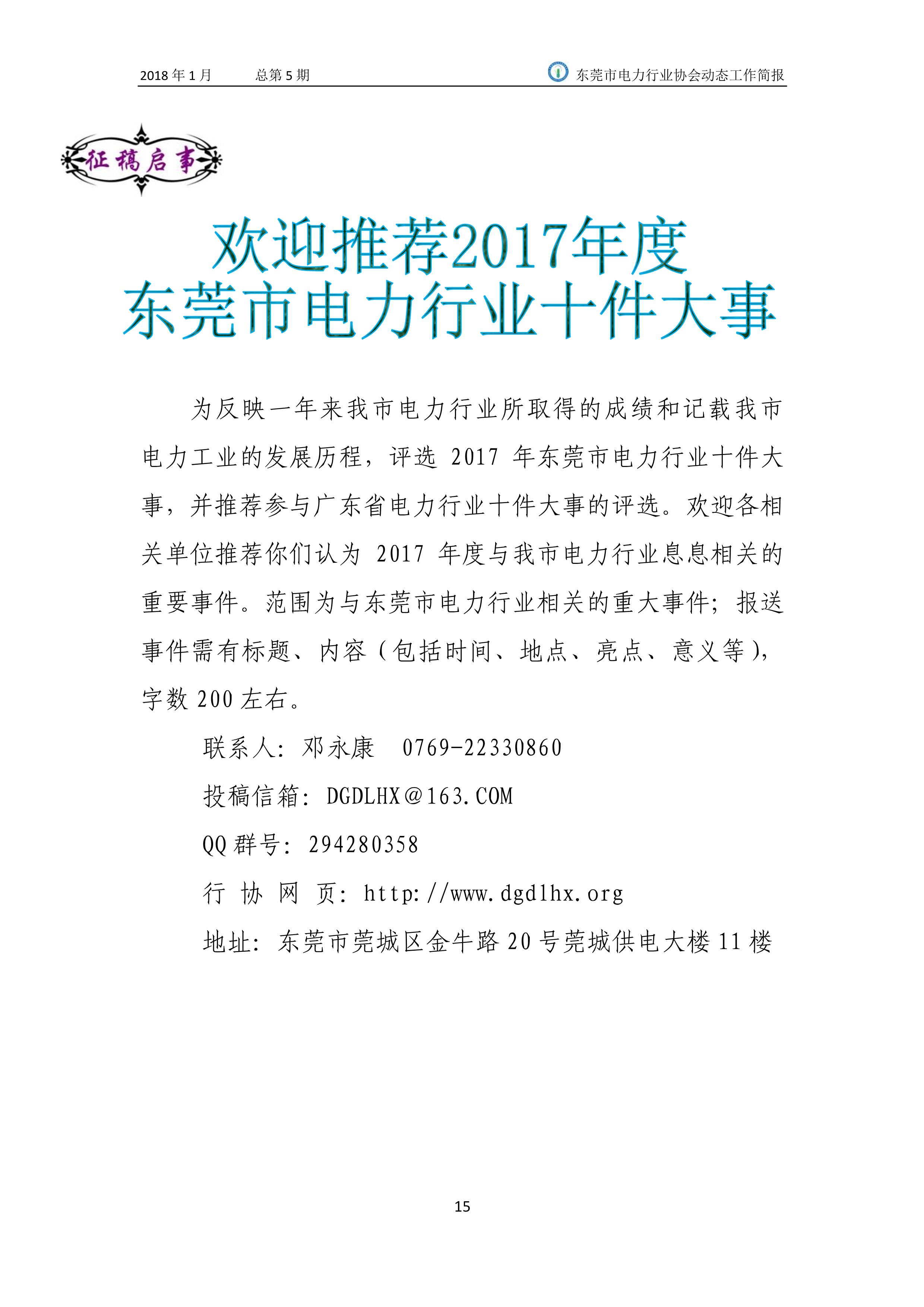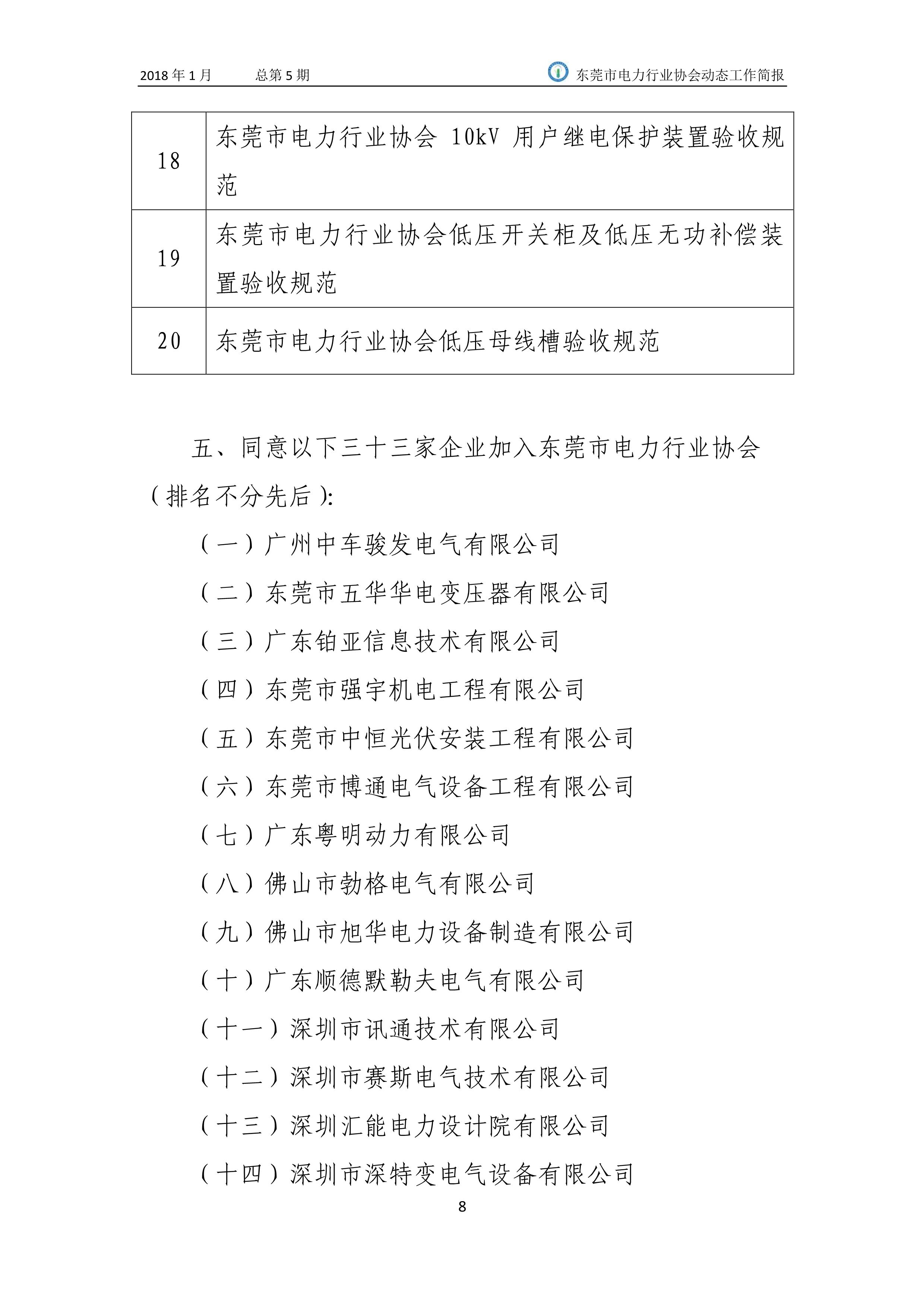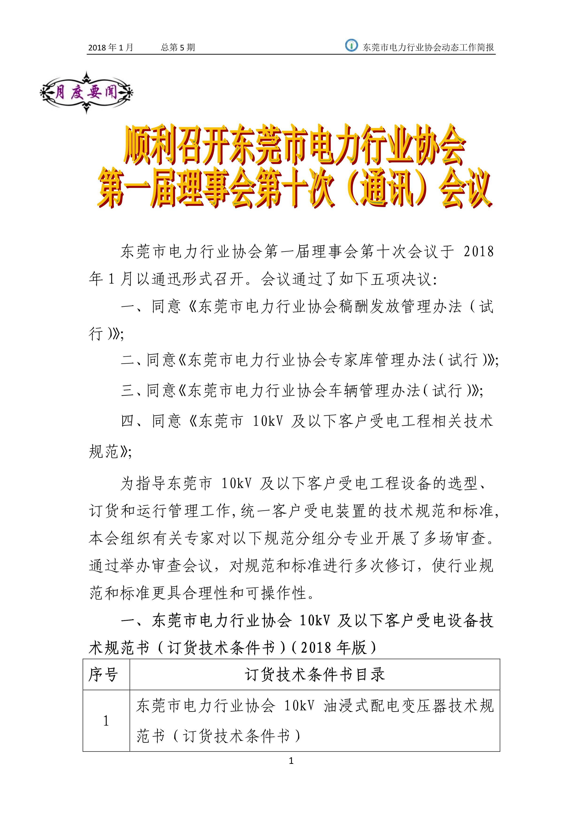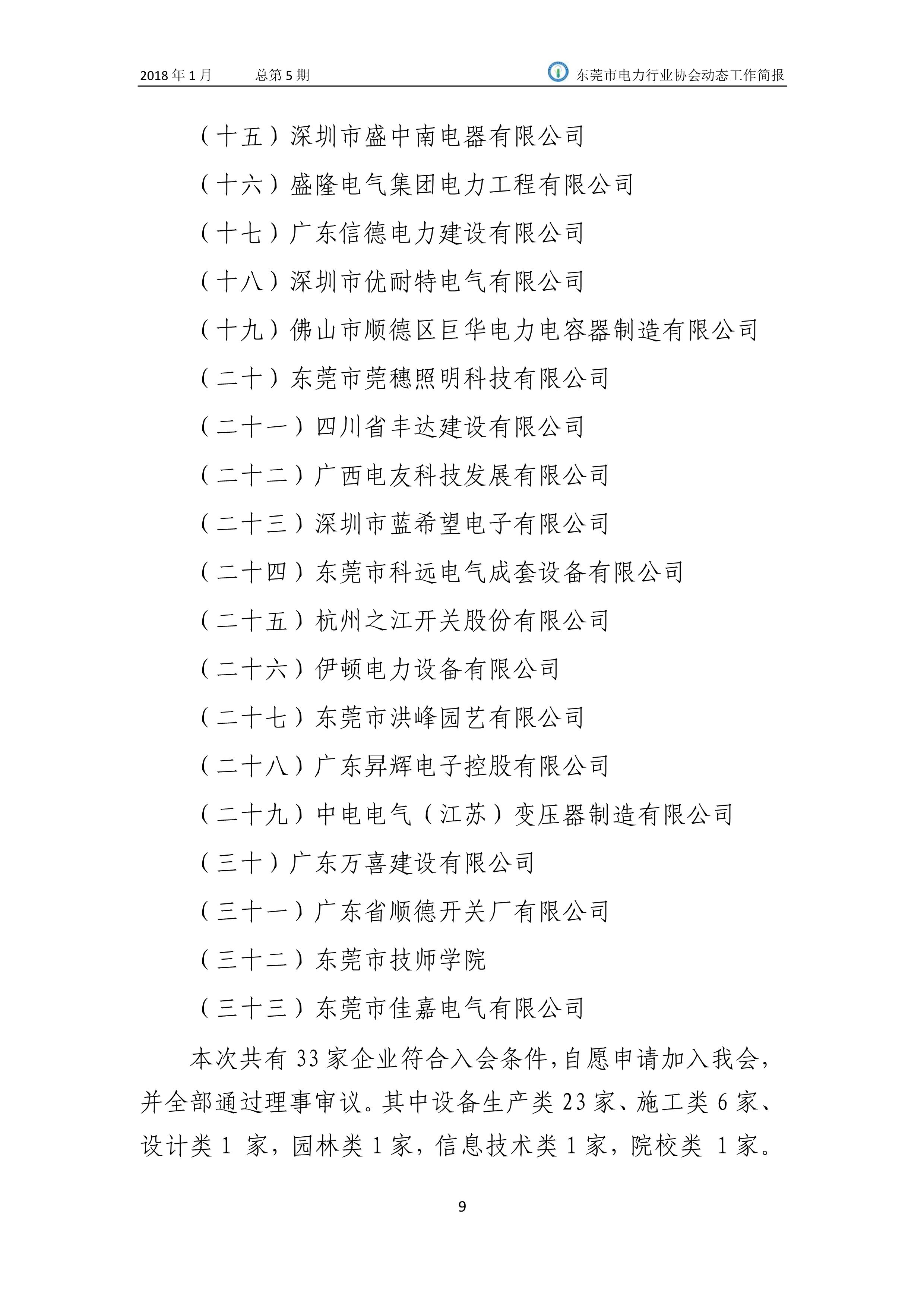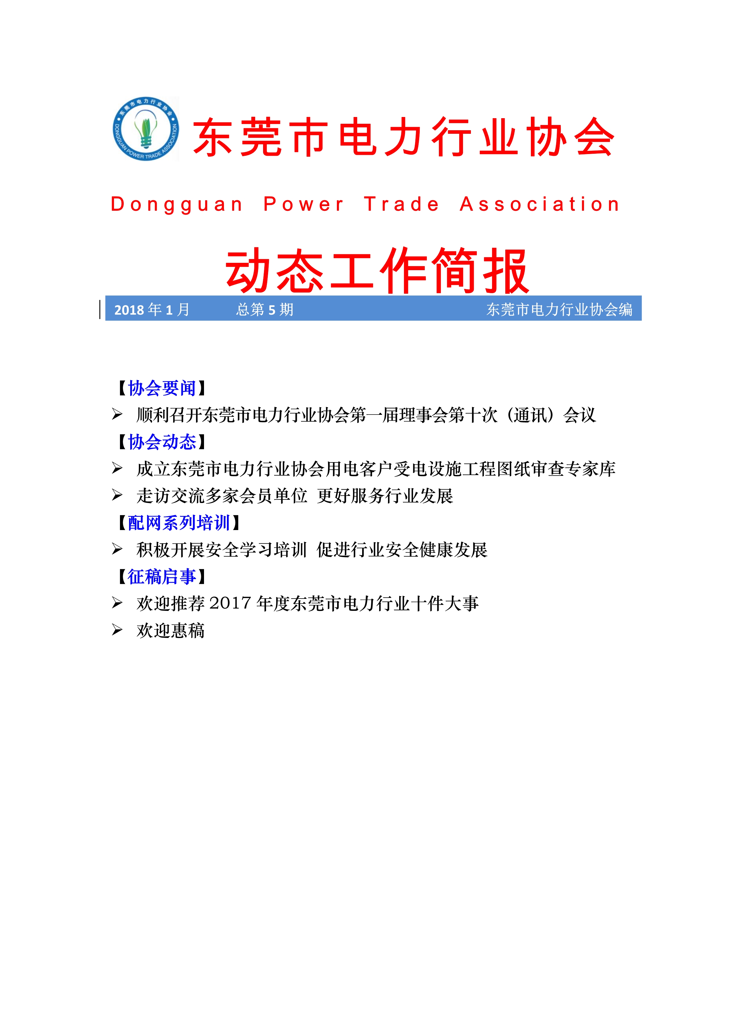 東莞市電力行業協會2018年(1月)動態工作簡報